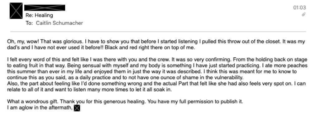 The person I am channeling this healing for was going about their day somewhere in the world, when I connected with them in the quantum field, a place we call the Field Of Wisdom (FOW). Each and every one of us is a collection of frequencies within the FOW and an inextricably integral part of consciousness - the universal web of energy, light, sound, vibration and resonance, stretching infinitely in all directions, that some of us refer to as The Universe or God etc. When I go into a healing, I begin by calling in the beings that i work with – The Crew (the podcast cover art is a picture we painted of them that I have with me in my studio) – and slowly enter a trance state, finding the person we are channeling for, through love in all it’s frequencies. We always begin the sessions with a short meditation. This helps us all integrate and connect.